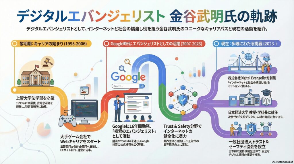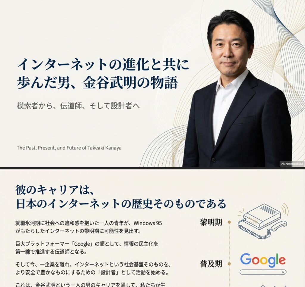 自分の資料を読み込ませるだけで、一瞬でビジュアル化してくれるこの機能。今回は、このNotebookLMのインフォグラフィックを、私自身のキャリア情報をソースとして使い、その実力を徹底的に試してみました。