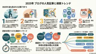 思い出 年末ブログ第1弾:今年良く読まれた記事 2025年 2025年も残すところあと僅かとなりました。ブログを立ち上げて2年、今年後半は大学の講義の関係で投稿も増え、定期的な情報発信が定着した1年となりました 。今回は年末企画の第1弾として、Google AnalyticsとSearch Cons... 2025.12.28 思い出